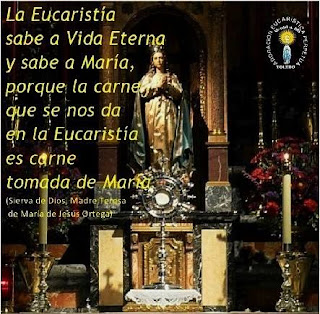 La Eucaristía sabe a Vida Eterna y sabe a María, porque la carne que se nos da en la Eucaristía es carne tomada de María.